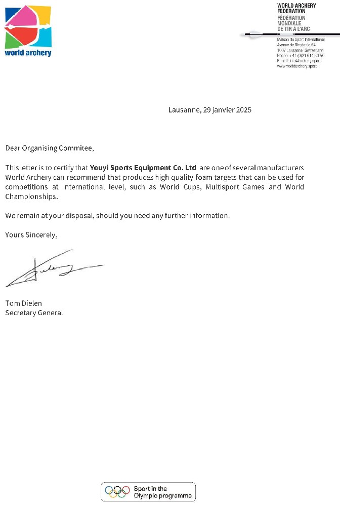 公司自主生產(chǎn)的器材先后成為2008年北京奧運會、2010年廣州亞運會、2011年深圳世界大學生運動會、2014年南京青奧會、2021年成都世界大學生運動會、2022年杭州亞運會等世界知名賽事射箭器材供應商。